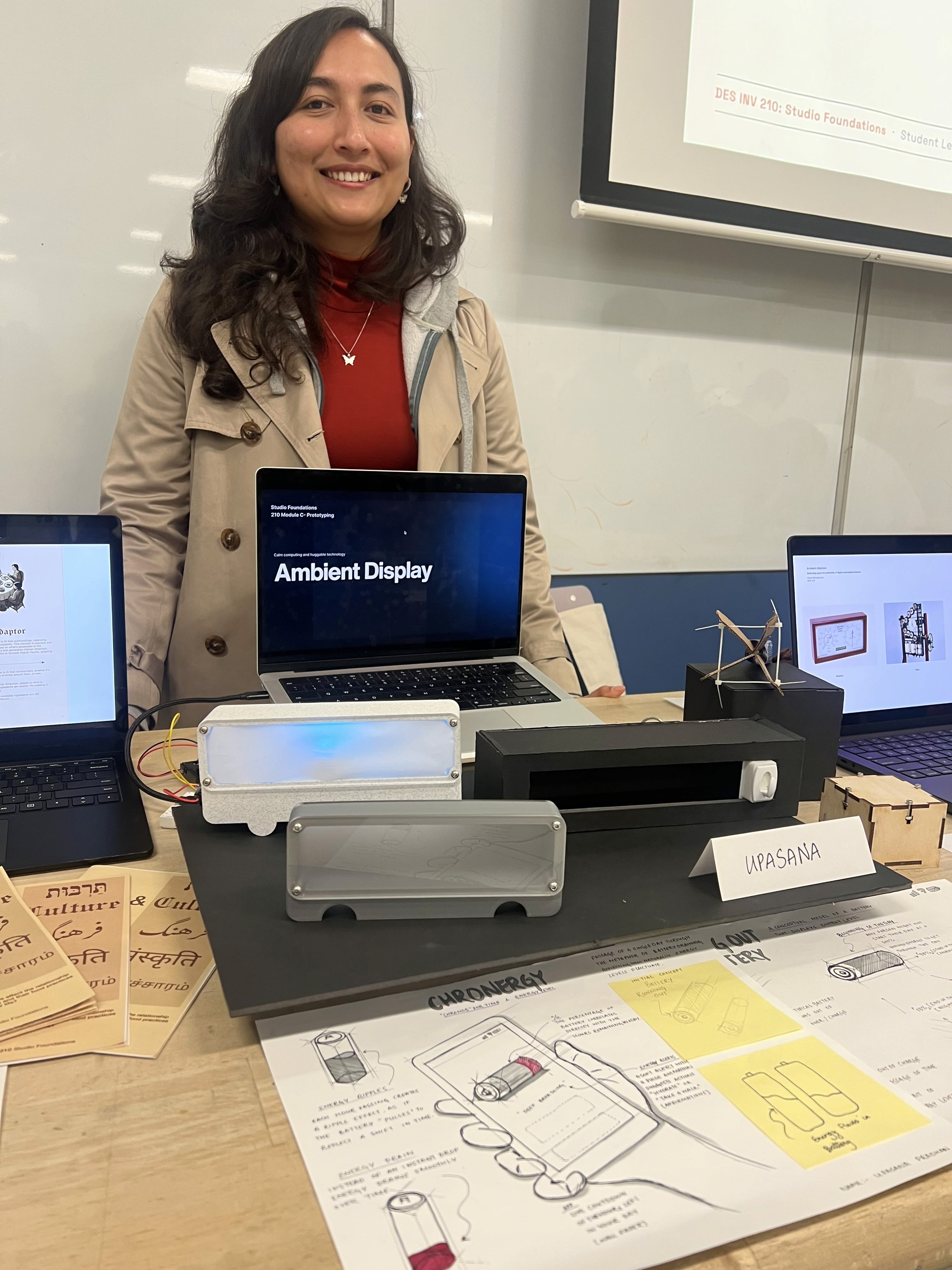 A honeycomb patterned phone stand created with computational design.